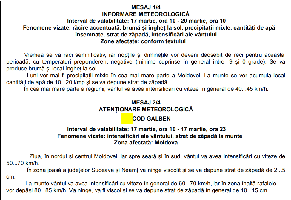 DETALIERE REGIONALĂ PENTRU ZONA MOLDOVAMESAJ PRIVIND FENOMENE METEOROLOGICE PERICULOASE NR. 20